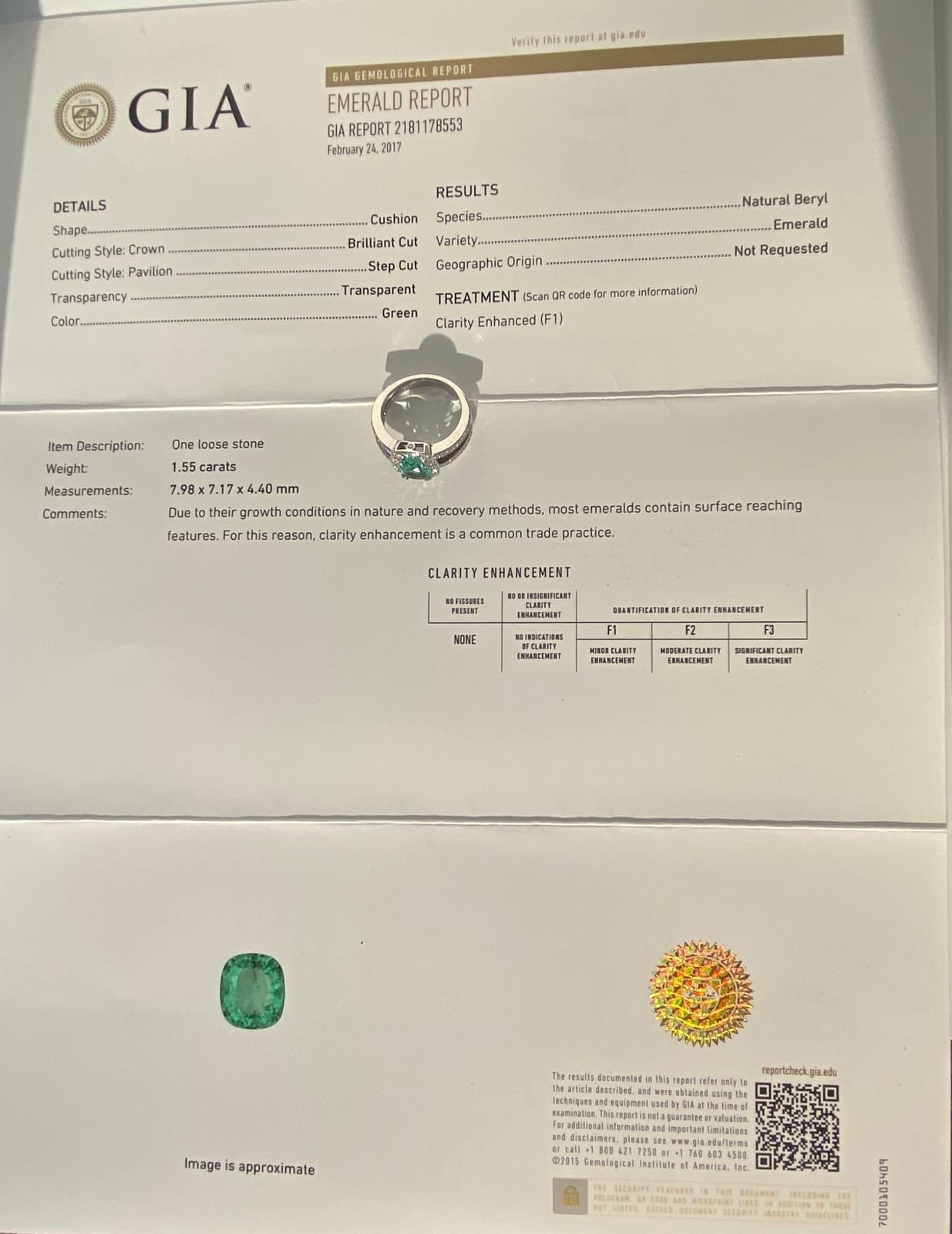 of one Emerald (GiIA) and round cut diamonds
